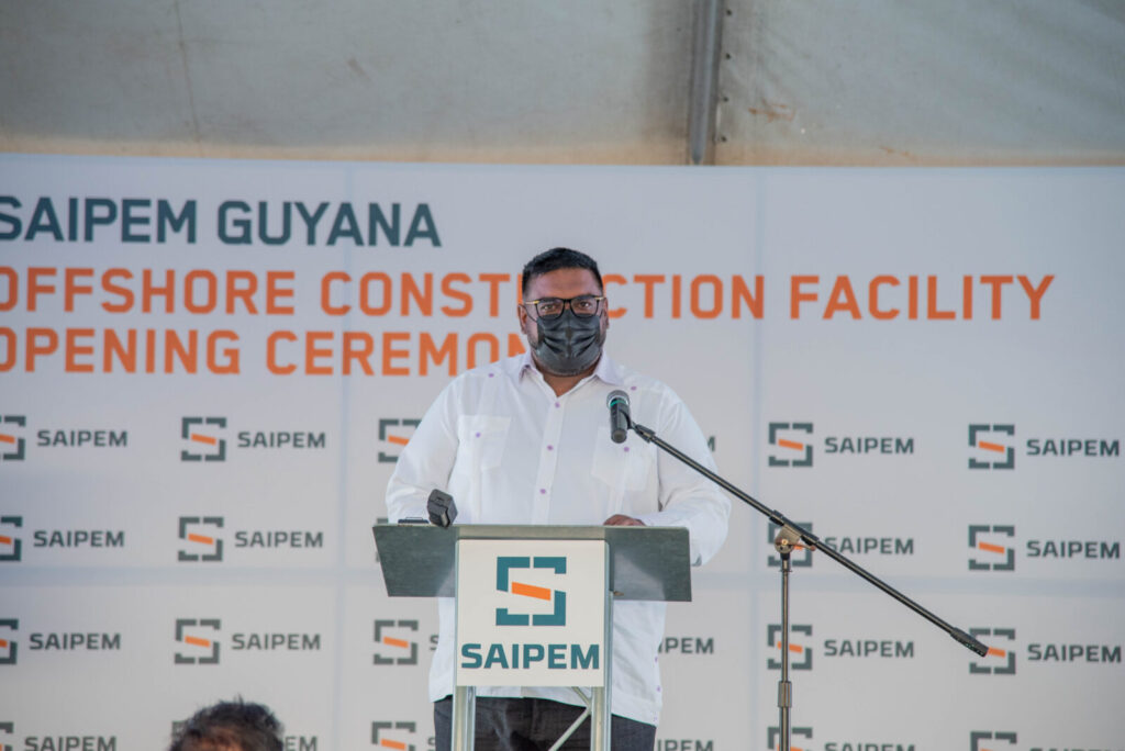 President Dr. Mohamed Irfaan Ali at the Saipem facility launch in Georgetown